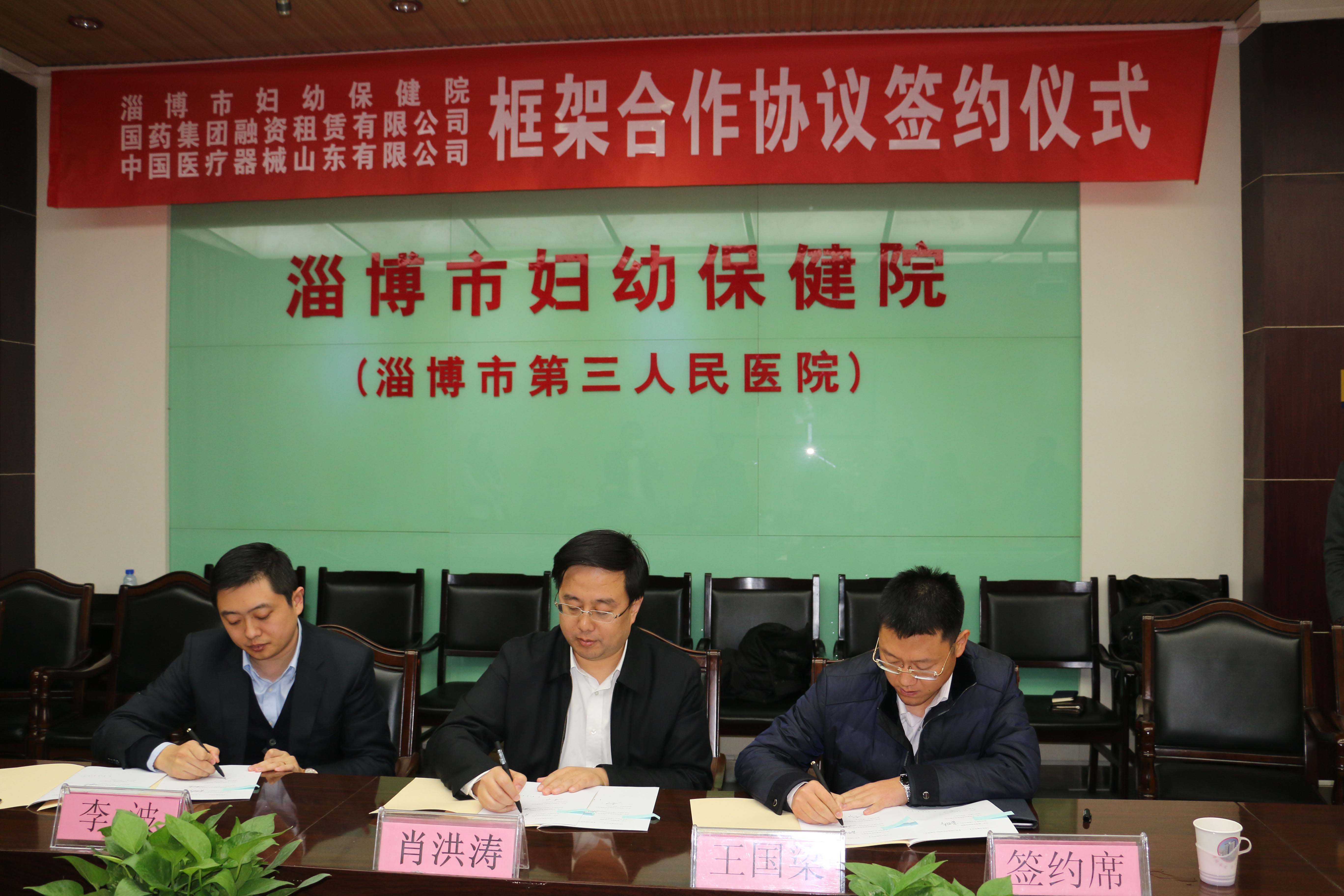 2014年12月30日下午,公司與淄博市婦幼保健院(以下簡稱:淄博婦幼)、中國醫療器械山東有限公司(以下簡稱:國藥器械山東公司)在淄博婦幼病房一樓會議室舉行簽約儀式,三方共同簽訂瞭《框架合作協議》,公司常務副總經理王國梁出席並簽約。