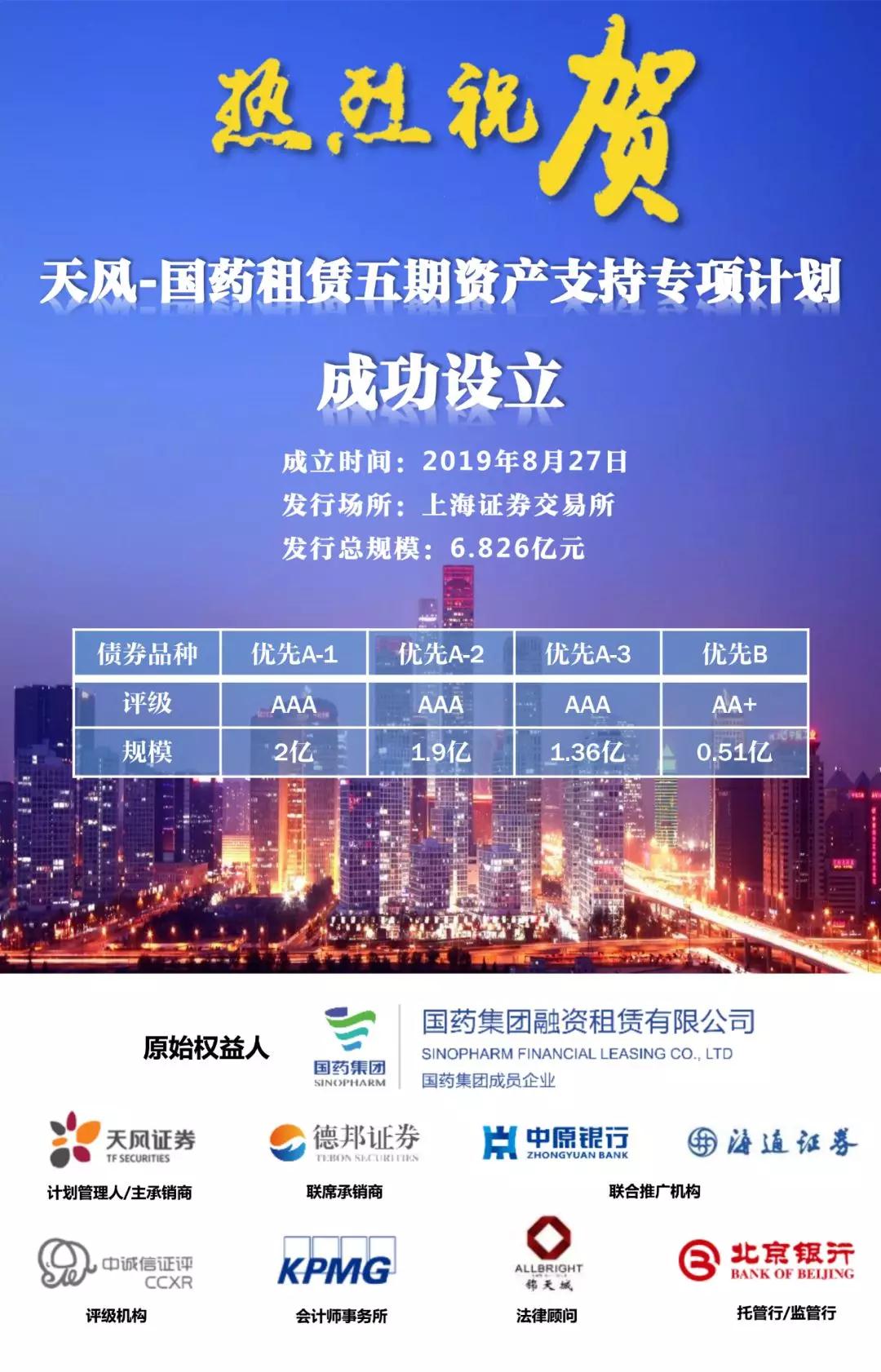 熱烈祝賀國藥租賃五期資産支持專項計劃成功設立