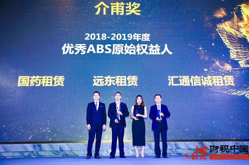 2019年9月25日,由财視中國主辦的“第五屆結構性融資與資産證券化論壇2019”在上海隆重召開,在同期舉辦的“2018-2019年度介甫獎”評選中,國藥集團融資租賃有限公司(以下簡稱“國藥租賃”)榮獲“優秀原始權益人”獎。