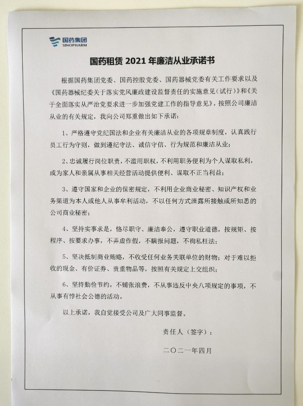 國藥集團融資租賃有限公司黨支部 2021年4月“廉潔從業文化月”主題活動(一)
